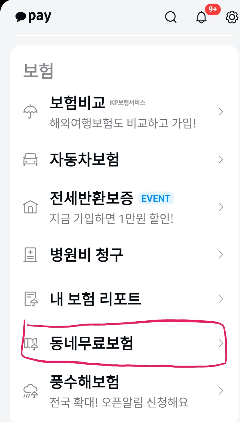 그래서 카카오페이의 동네 보험 서비스를 통해 보험 혜택 받을 수 있어요.