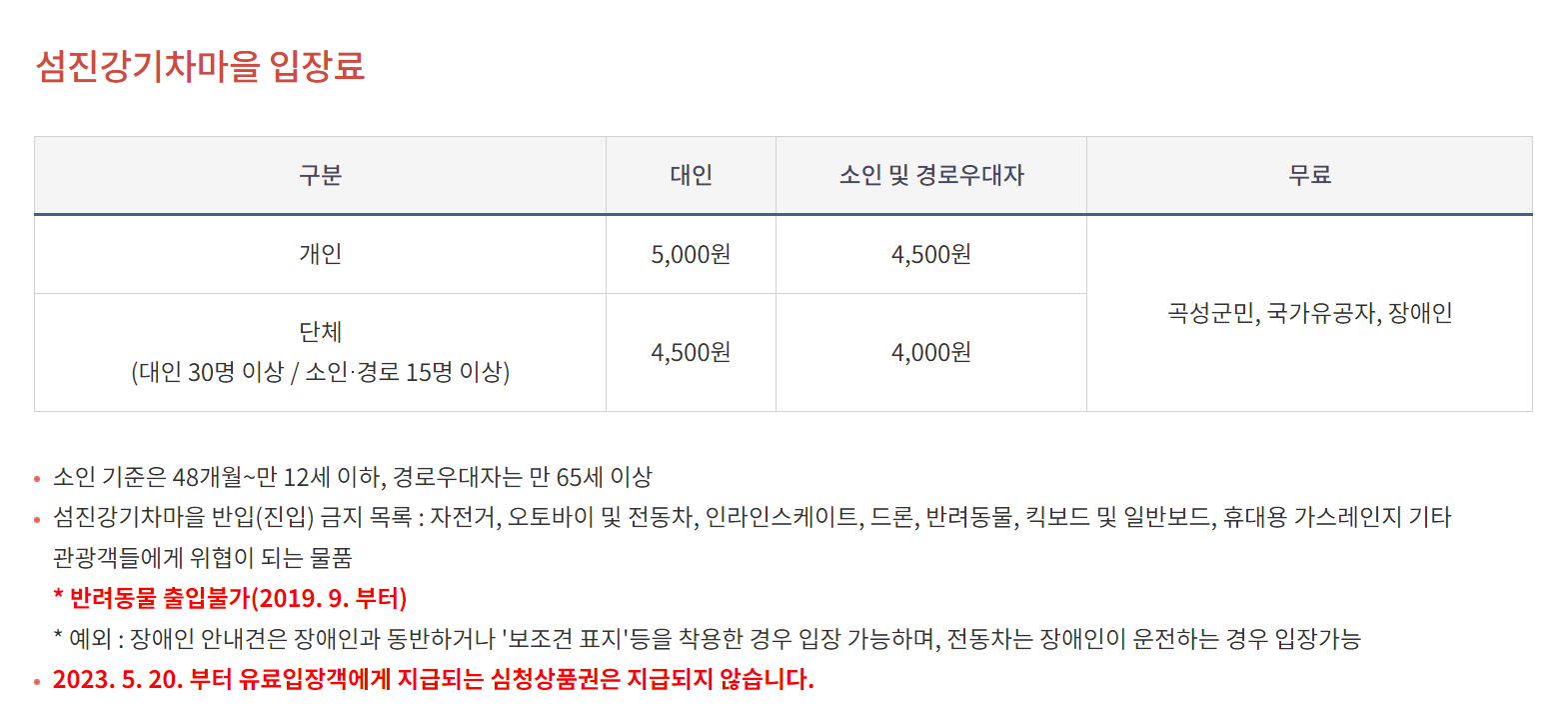 - 축제 기간 동안은 밤 10시까지 섬진강기차마을 연장 운영