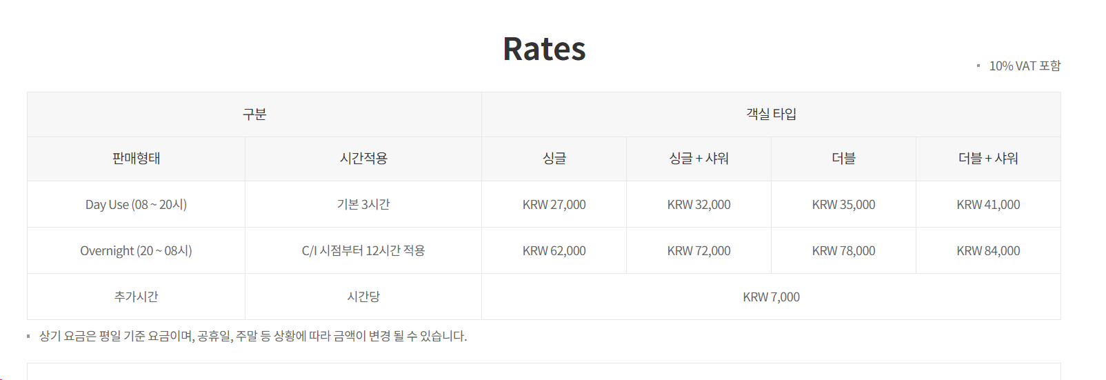 - 야간의 경우 오후 8시부터 오전 8시에 해당하며, 체크인 시점부터 12시간이 적용되죠.