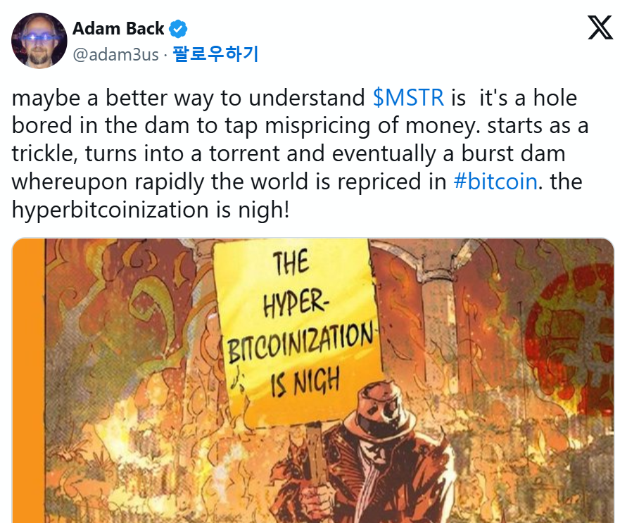 - 아담 백은 “마이크로스트래티지는 돈의 잘못된 가격을 이용하기 위해 댐에 뚫은 구멍이다”고 비유했다.
